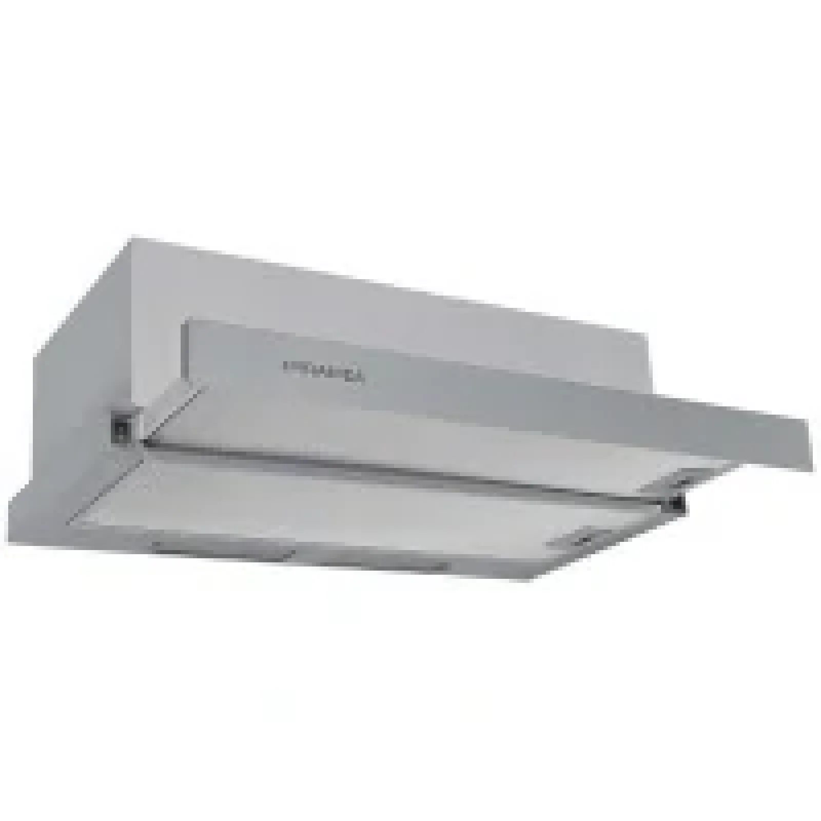 Телескопическая вытяжка; механический тип управления; Отвод/рециркуляция воздуха; количество двигателей: 1; количество скоростей: 3; потребляемая мощность, Вт: 120; Производительность: 700 куб. м/ч.; тип освещения: Лампы накаливания; количество ламп: 2; мощность каждой лампы, Вт: 40; металлический жировой фильтр; диаметр воздухоотвода, мм: 120; ширина для встраивания, см: 50; размеры (В х Ш х Г), см: 19 х 50 х 29.5 - 45.5; нержавеющая сталь