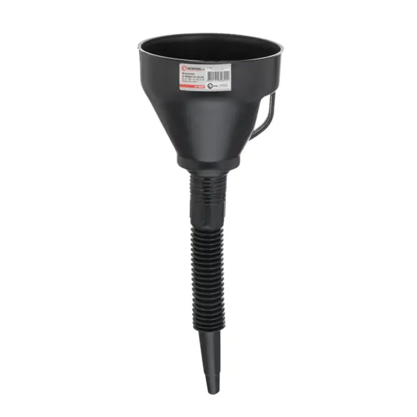 Знімний гофрований носик забезпечує зручне заливання рідин навіть у важкодоступні заливні горловини. Також він дозволяє тримати лійку під будь-яким потрібним кутом, що неможливо при використанні воронок з прямим жорстким носиком.