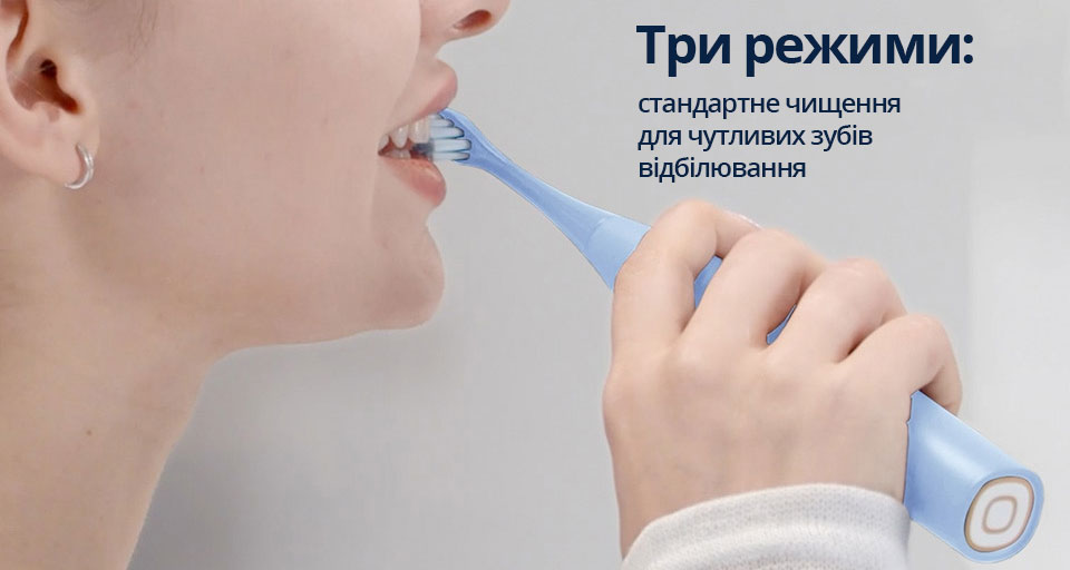 Просто перемикайте 3 режими за допомогою кнопки над світлодіодним індикатором, натиснувши і утримуючи кнопку протягом 2 секунд, або натисніть і відпустіть, щоб включити / вимкнути зубну щітку.