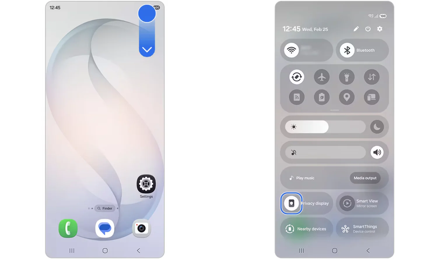 Ви можете швидко активувати Privacy Display зі Швидкої панелі, провівши вниз від верхньої частини екрана.