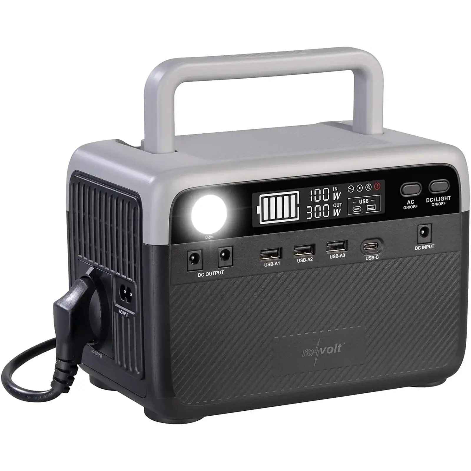 Номінальна потужність 300 Вт дозволяє підключати не лише мобільні гаджети, а й невеликі побутові пристрої. Модель має універсальний набір інтерфейсів: розетку 230 В, USB-порти, USB-C з підтримкою швидкого заряджання, а також DC-виходи. Завдяки цьому станцію можна використовувати як універсальне джерело живлення для роботи поза мережею, кемпінгу або резервного живлення вдома.