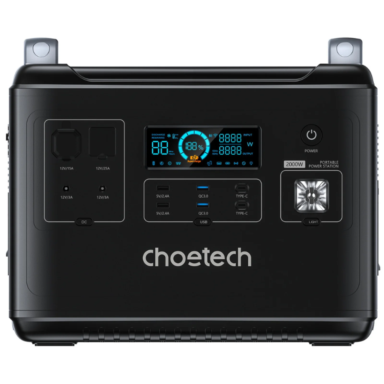 Універсальність та багатофункціональність – ті переваги, що роблять електростанції Choetech корисними в побуті і незамінними у надзвичайних випадках. У них великий набір інтерфейсних роз'ємів, тому до Choetech можна підключати як класичні вилки електроприладів, так і зарядні кабелі. Ця багатофункціональна електростанція оснащена входом змінного струму, двома портами USB-A, двома портами швидкої зарядки USB-A 18 Вт, двома портами PD 100 Вт, портом XT60, двома портами постійного струму DC, автомобільним портом, РК-дисплеєм і ліхтарем.