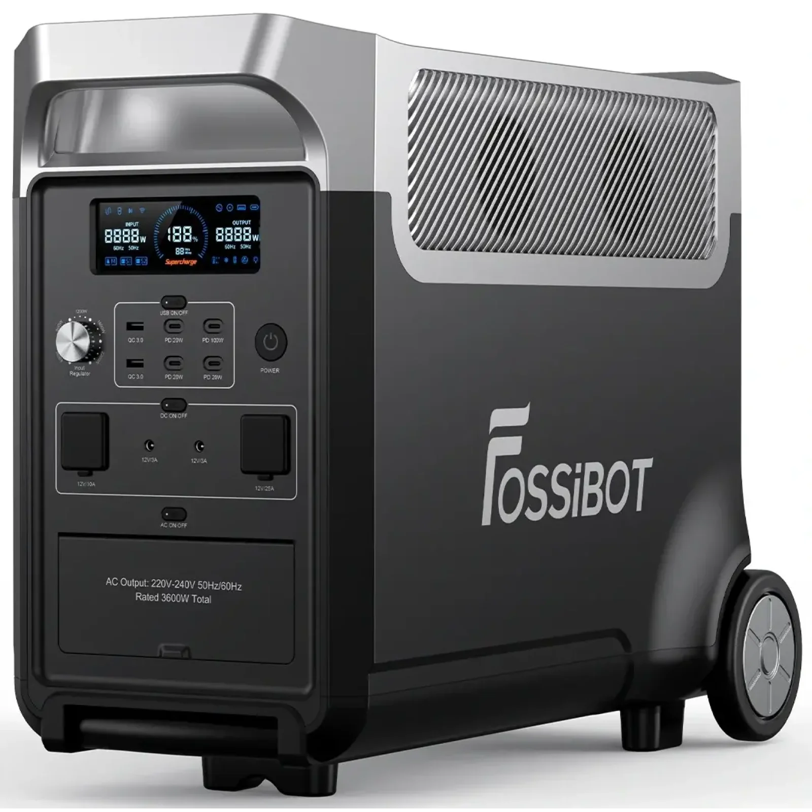 Що ви отримуєте: портативна електростанція FOSSiBOT F3600 (3840 Вт·год), знімний ліхтарик-спалах, 3 типи кабелю для заряджання (кабель для заряджання змінним струмом, кабель для зарядки в автомобілі, кабель для заряджання від сонячних батарей), посібник користувача.
