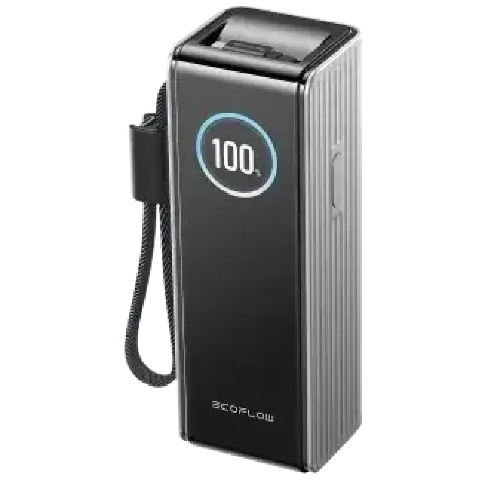 EcoFlow RAPID Power Bank має 2 вбудовані USB-C кабелі (26 см і 67 см) і додатковий порт USB-C, що зменшує потребу в додаткових проводах. Така конструкція дозволяє миттєво підключити пристрій і почати заряджання без зайвих дротів і адаптерів.