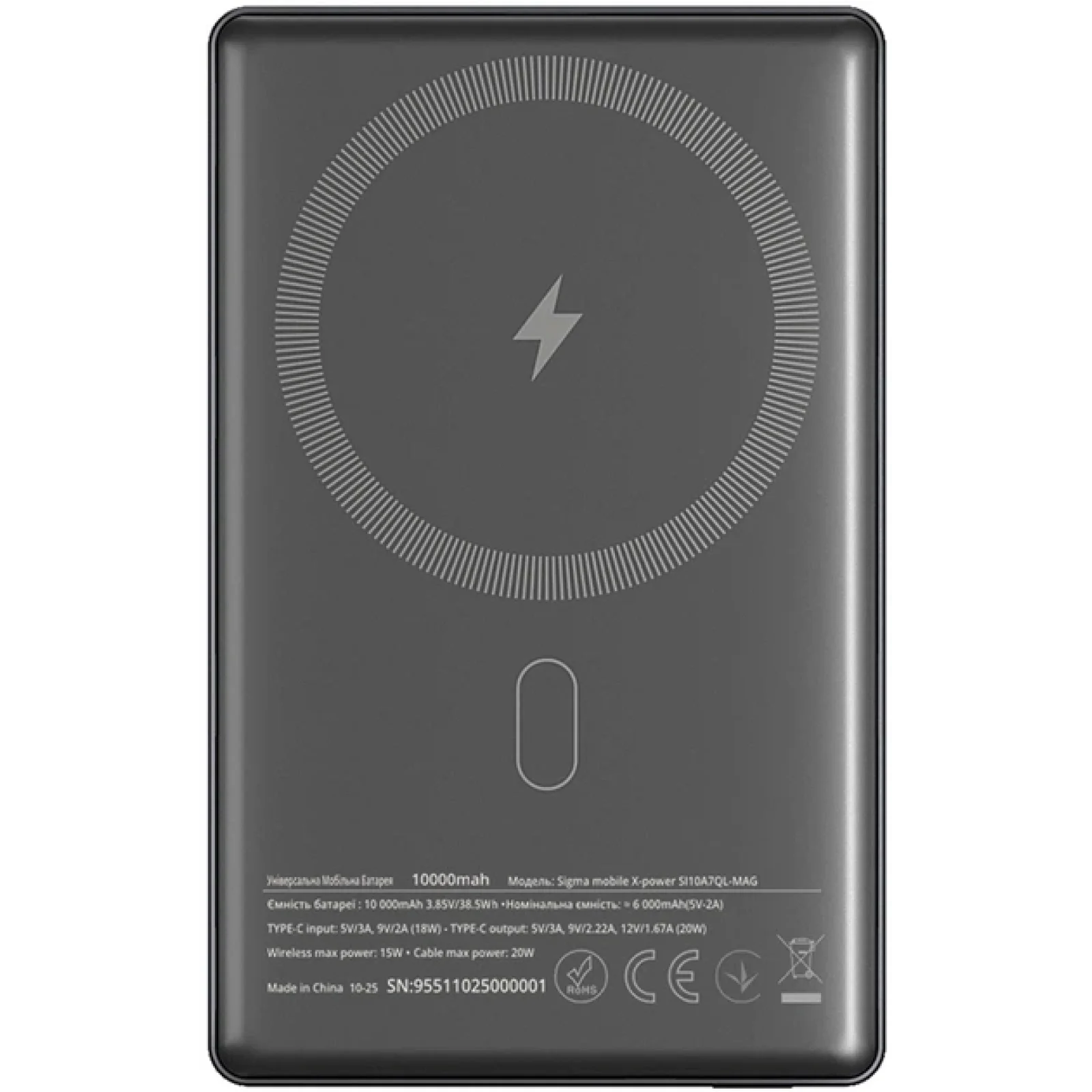 Зовнішній акумулятор Sigma Mobile X-power SI10A7QL-MAG 10000 мА·год Grey: Магнітний заряд для твоїх пригод!