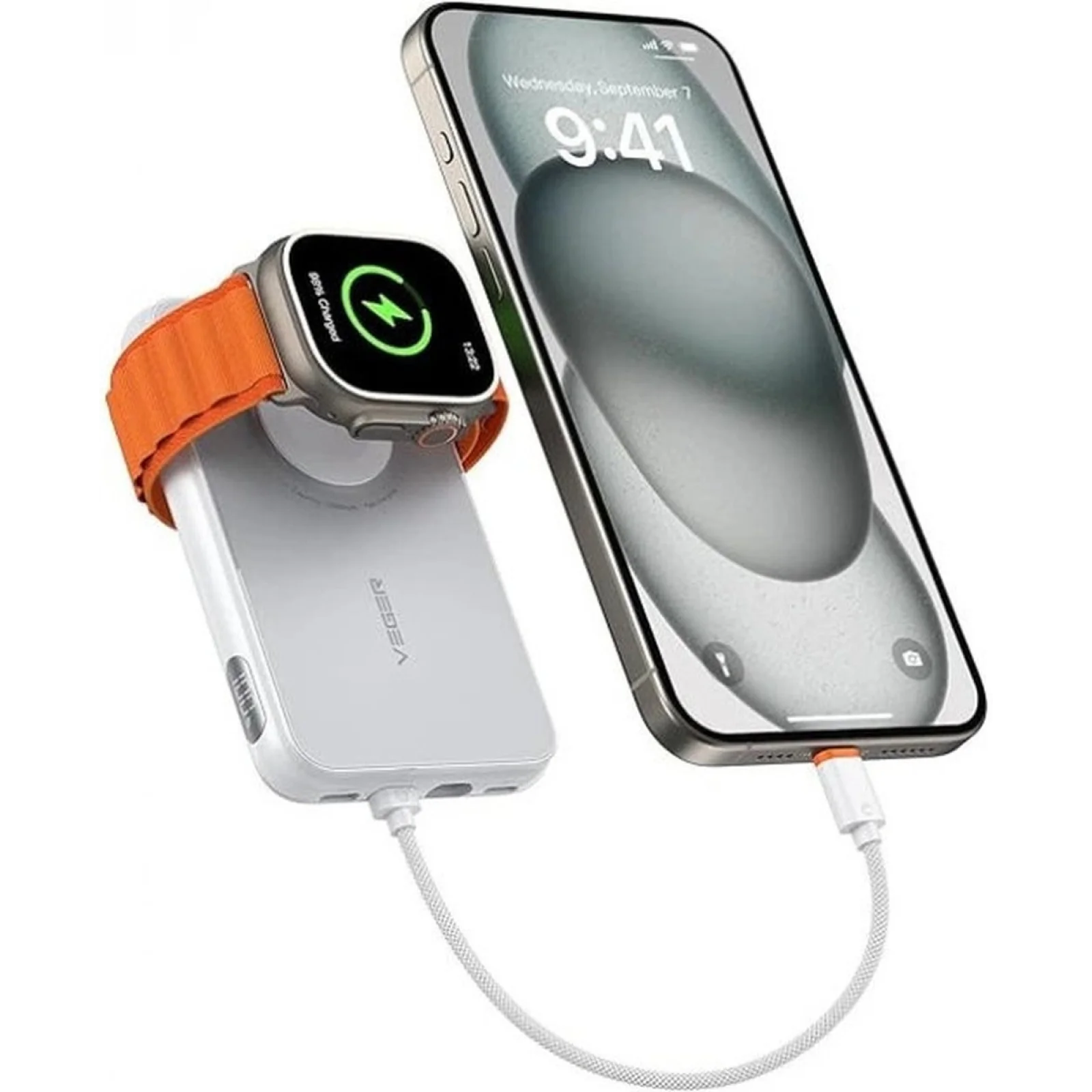 VEGER V1171 — це компактний білий повербанк на 10000 мА·год, створений як універсальне рішення для власників техніки Apple та девайсів з USB-C. Він має вбудований двонаправлений кабель USB‑C ↔ iOS, магнітний модуль для зарядки Apple Watch і підтримує PD 20W швидку зарядку, тож один аксесуар закриває потреби iPhone, годинника та навушників одночасно. Корпус з компактними розмірами комфортно лягає в руку й легко поміщається в кишеню чи невелику сумку.