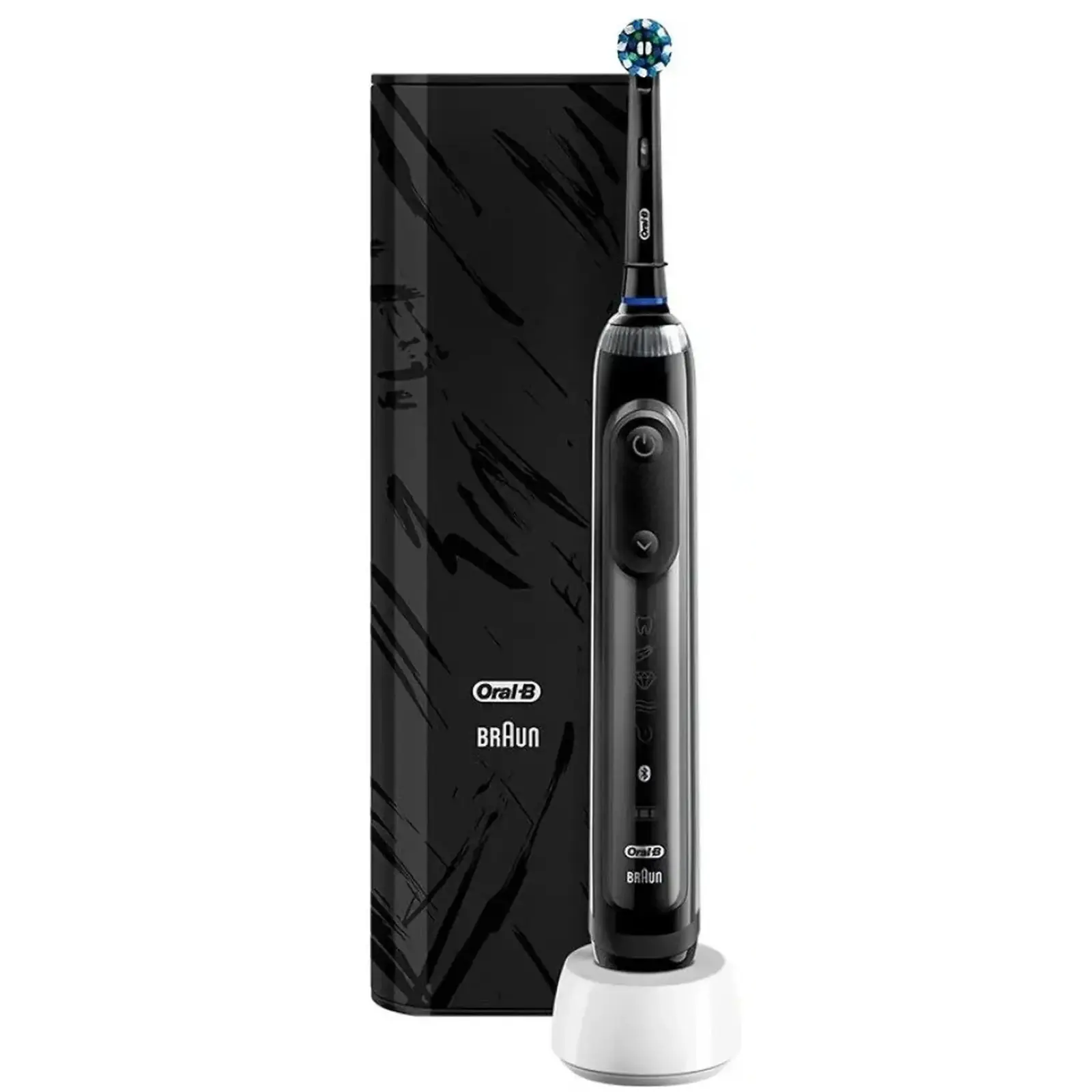 Інноваційна система живлення з Li-Ion акумулятором забезпечує до 12 днів автономності, магнітна зарядна станція з LED-індикатором та Power2Go-футляр для подорожей поповнюють заряд де завгодно. Водонепроникний (IPX7) матово-чорний корпус вагою 113 г з ергономічною ручкою стійкий до вологи ванної. Преміальний вибір для сяючої посмішки та здорових зубів щодня.
